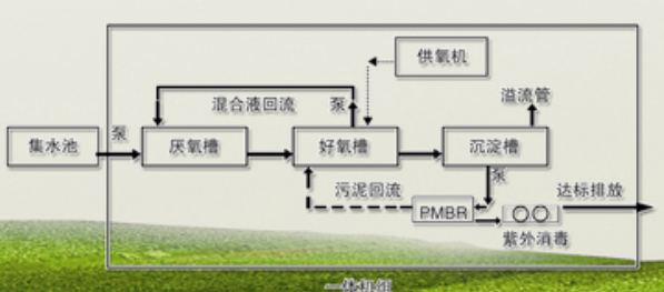 一體化有機廢水處理設(shè)備采用傳統(tǒng)成熟的A/O生物處理工藝,具備去除BOD5、COD、TN、TP于一體的功能,具有技術(shù)性能穩(wěn)定可靠、去除污染物效率高、體積小、重量輕、可自由移動、維護和維修方便、動力消耗低、不受水位高差限制等優(yōu)點。